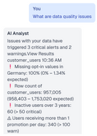 Monitors data and triggers activities in real time based on your data whatever it is about data quality, improvement monitoring or requesting new data from engineering department.