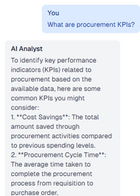 KPI database with pre-built analyses and best practices across multiple domains helps you get started quickly with your analytics. You can easily save additional KPIs and share them across your organization.